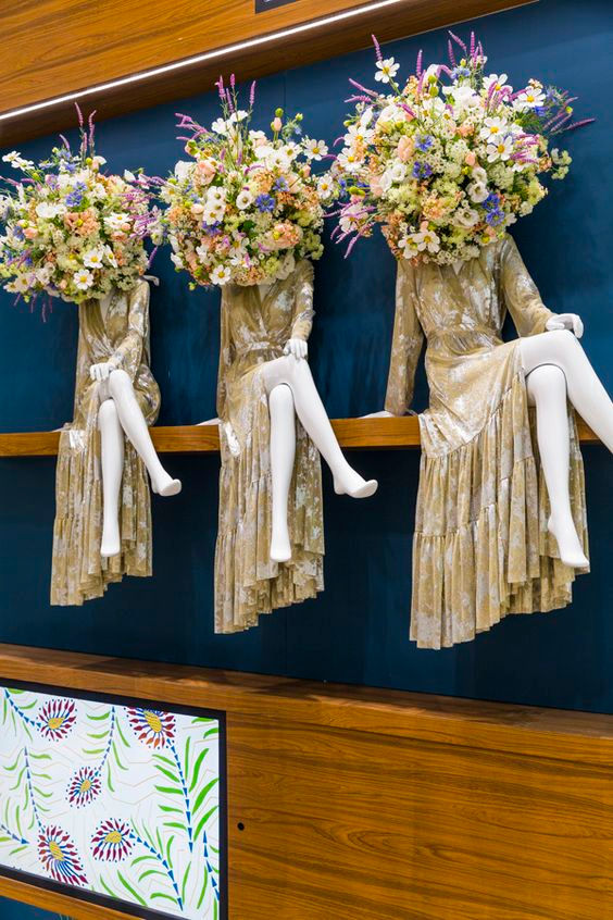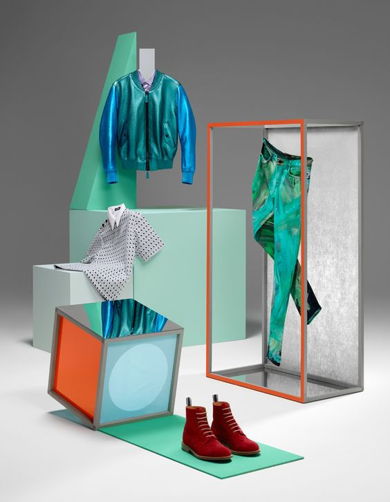 The bright colours of the more abstract displays would be eye catching for our customer, and the simplistic presentation of the way the clothes are placed on the mannequins are done in a beautiful manner would also attract our customer.